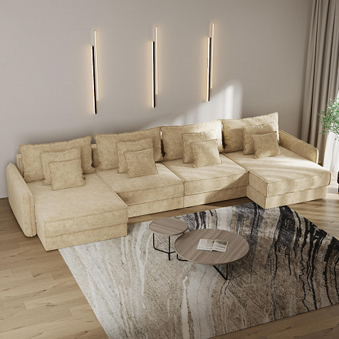 - 2 подушек в комплекте. 4 приспинных и 8 декоративных подушек разных размеров позволят скорректировать глубину посадки.