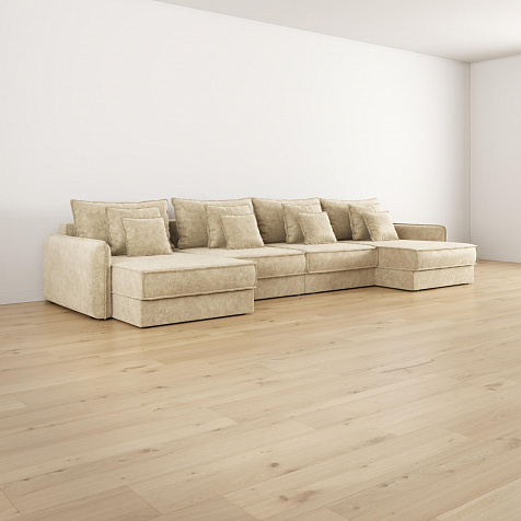 Глубина оттоманки: с подушками — 107 см, без подушек — 148 см.