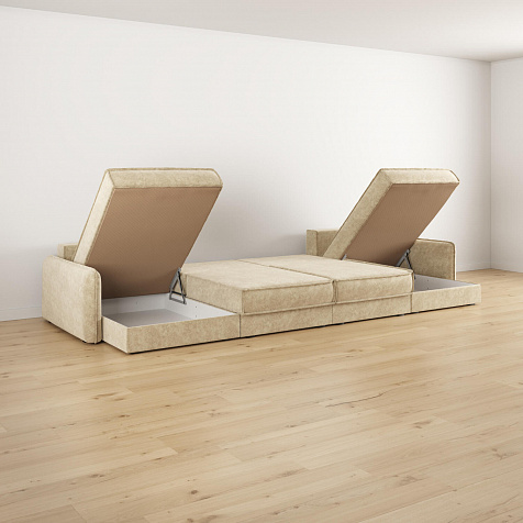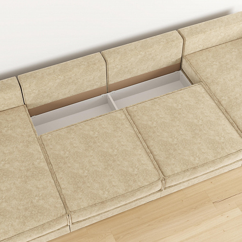 - 4 короба для белья. В диванных секциях и оттоманках предусмотрены вместительные коробы для хранения постельного белья и других вещей.