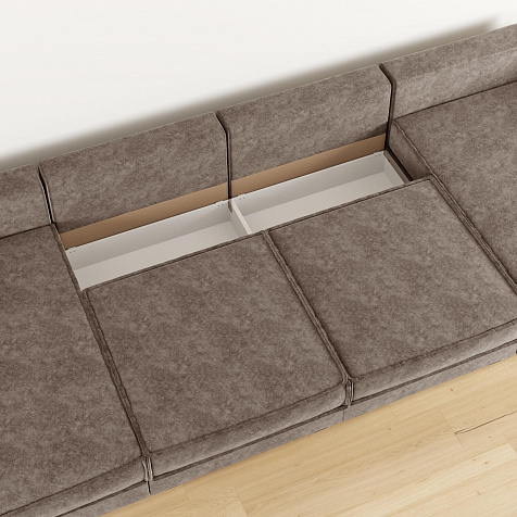 - 4 короба для белья. В диванных секциях и оттоманках предусмотрены вместительные коробы для хранения постельного белья и других вещей.