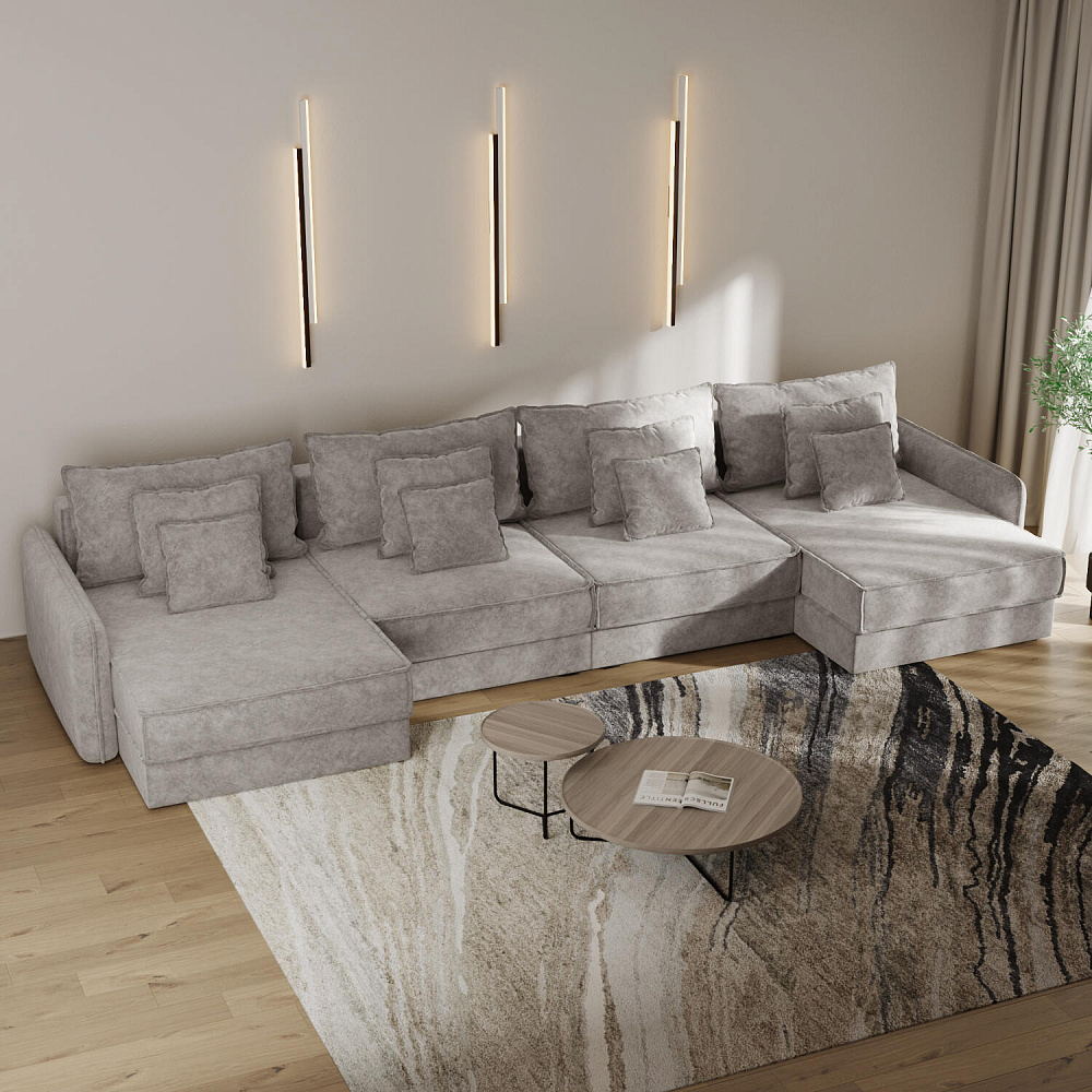 - 2 подушек в комплекте. 4 приспинных и 8 декоративных подушек разных размеров позволят скорректировать глубину посадки.