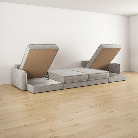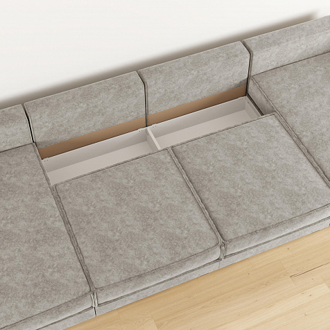 - 4 короба для белья. В диванных секциях и оттоманках предусмотрены вместительные коробы для хранения постельного белья и других вещей.