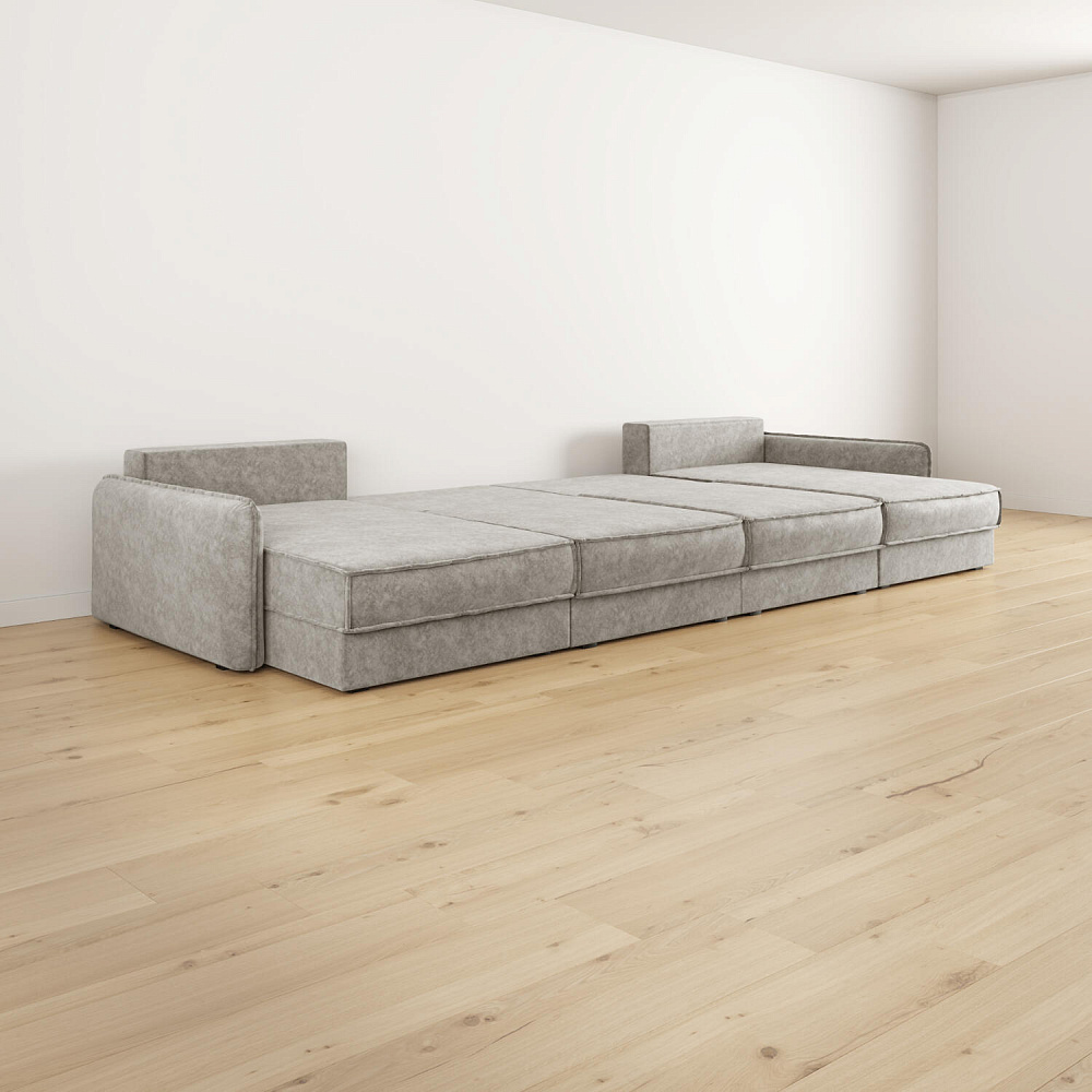- Размер спального места — 400 х 167 см. Диван легко трансформируется в полноценное спальное место для сна и отдыха двух человек.