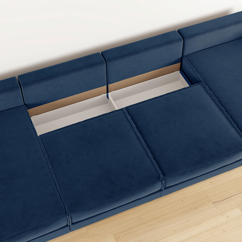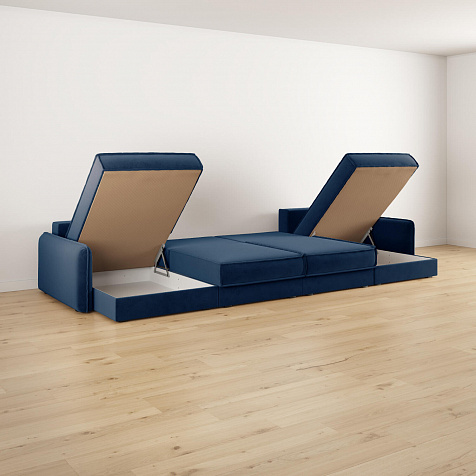 - 4 короба для белья. В диванных секциях и оттоманках предусмотрены вместительные коробы для хранения постельного белья и других вещей.