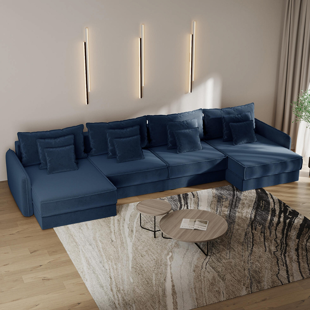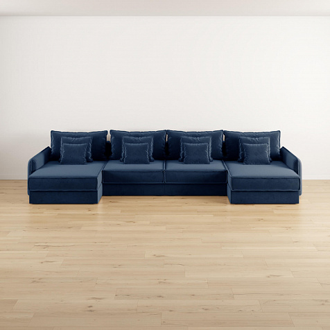 - 12 подушек в комплекте. 4 приспинных и 8 декоративных подушек разных размеров позволят скорректировать глубину посадки.