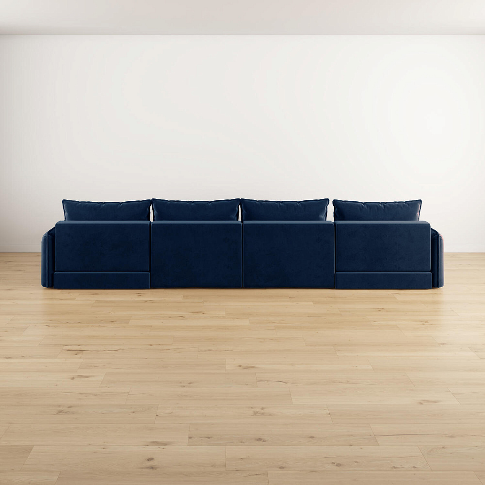 Глубина оттоманки: с подушками — 107 см, без подушек — 148 см.