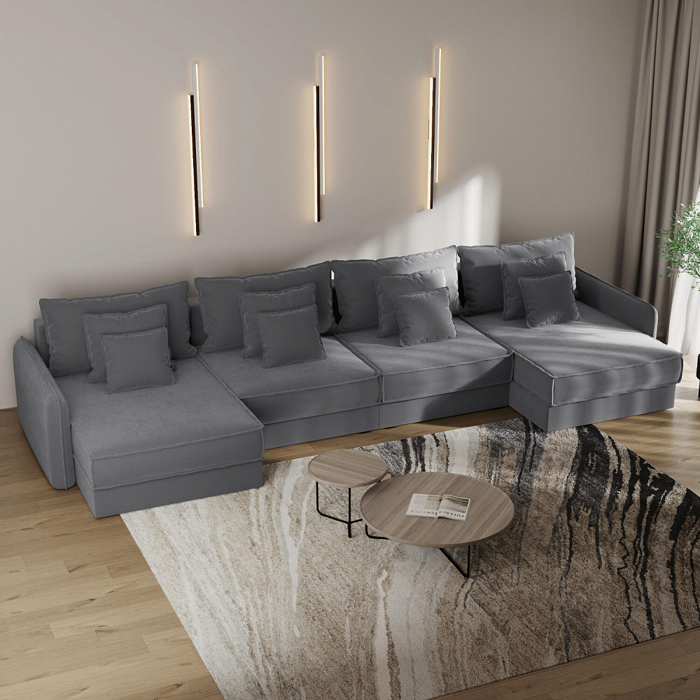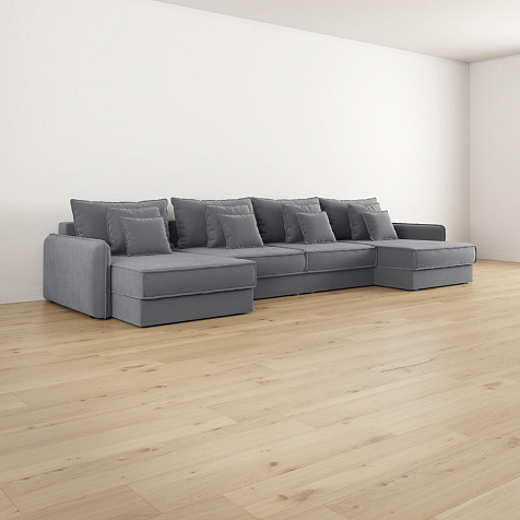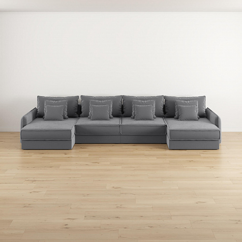 - 12 подушек в комплекте. 4 приспинных и 8 декоративных подушек разных размеров позволят скорректировать глубину посадки.