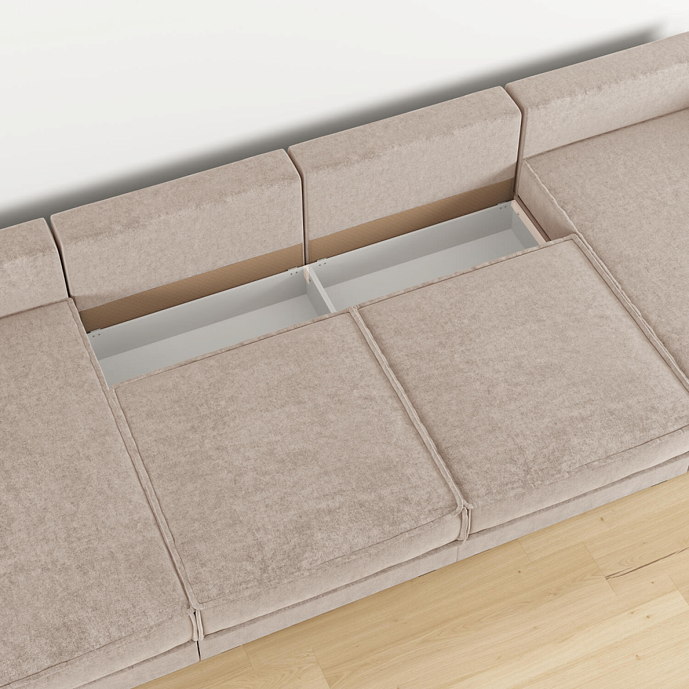- 4 короба для белья. В диванных секциях и оттоманках предусмотрены вместительные коробы для хранения постельного белья и других вещей.