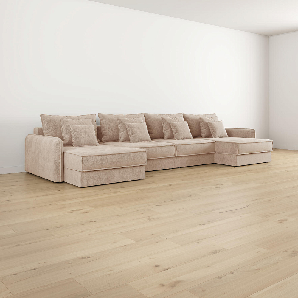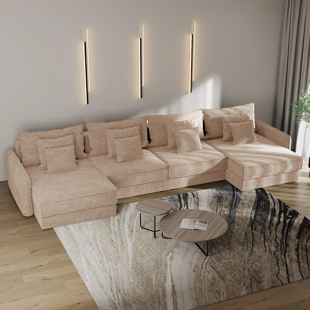 - 12 подушек в комплекте. 4 приспинных и 8 декоративных подушек разных размеров позволят скорректировать глубину посадки.