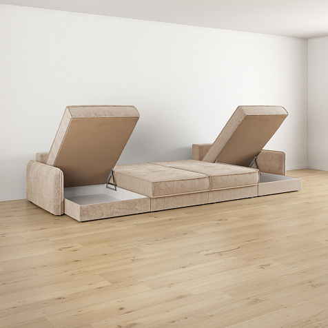 - 4 короба для белья. В диванных секциях и оттоманках предусмотрены вместительные коробы для хранения постельного белья и других вещей.