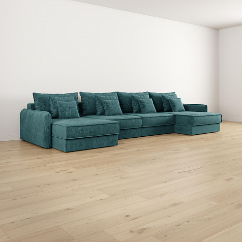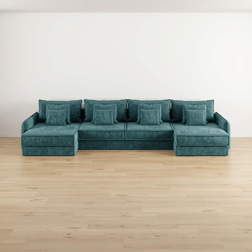 - 12 подушек в комплекте. 4 приспинных и 8 декоративных подушек разных размеров позволят скорректировать глубину посадки.