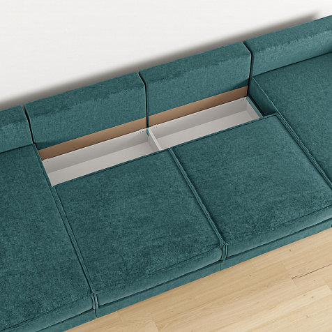 - 4 короба для белья. В диванных секциях и оттоманках предусмотрены вместительные коробы для хранения постельного белья и других вещей.