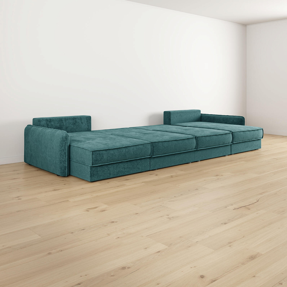 - Размер спального места — 400 х 167 см. Диван легко трансформируется в полноценное спальное место для сна и отдыха двух человек.