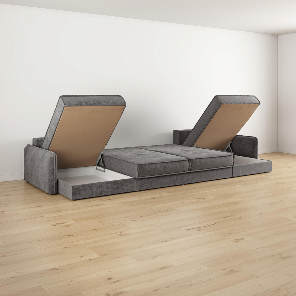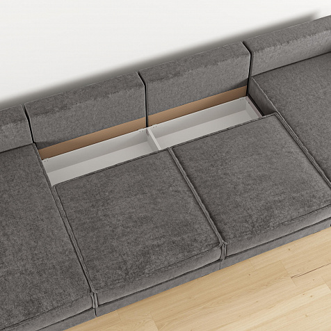 - 4 короба для белья. В диванных секциях и оттоманках предусмотрены вместительные коробы для хранения постельного белья и других вещей.
