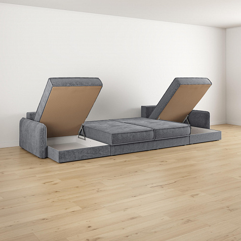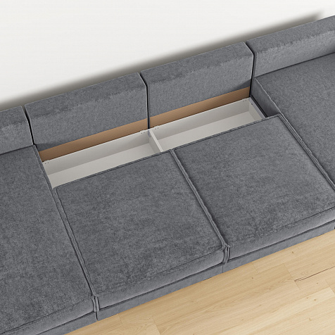 - 4 короба для белья. В диванных секциях и оттоманках предусмотрены вместительные коробы для хранения постельного белья и других вещей.