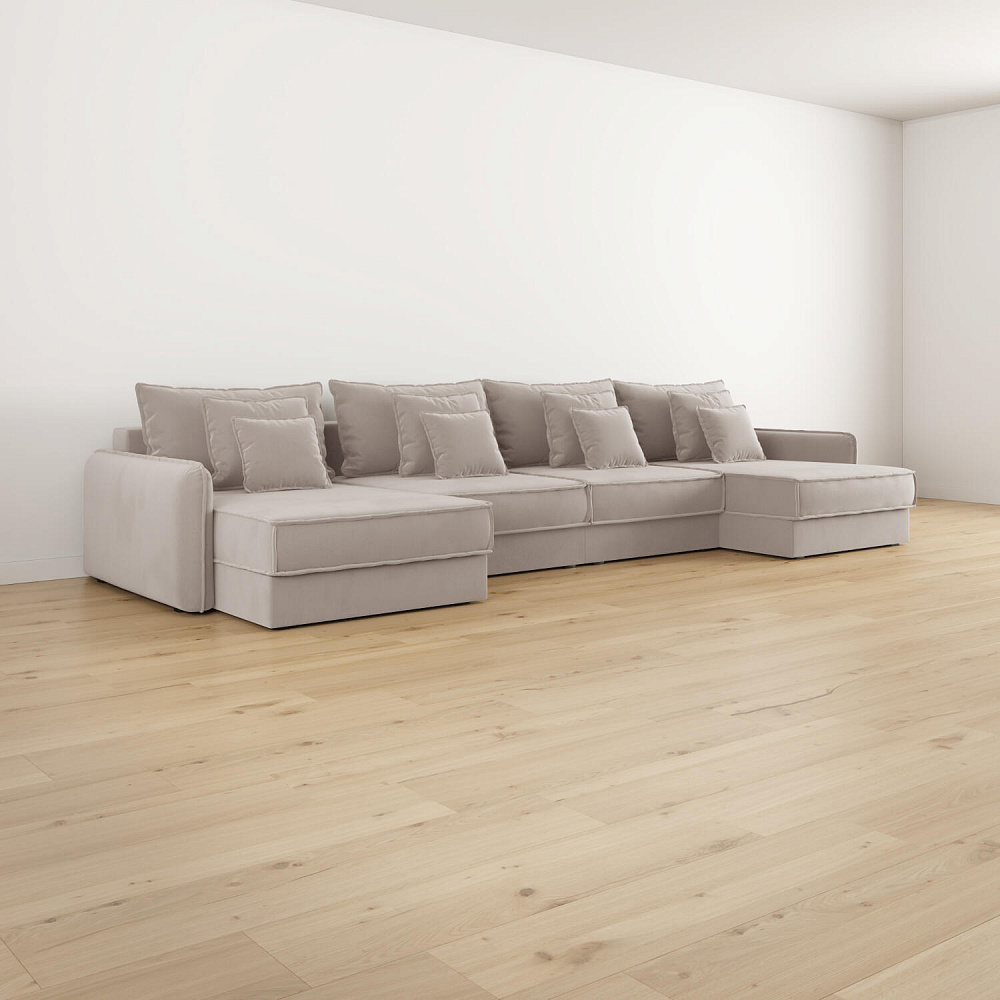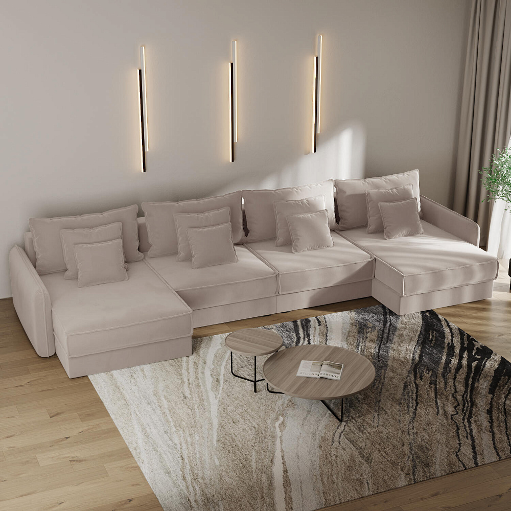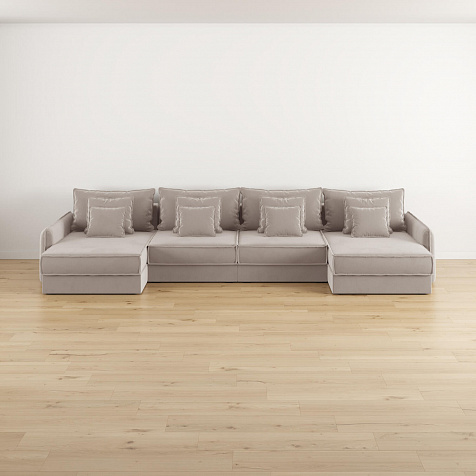 - 12 подушек в комплекте. 4 приспинных и 8 декоративных подушек разных размеров позволят скорректировать глубину посадки.