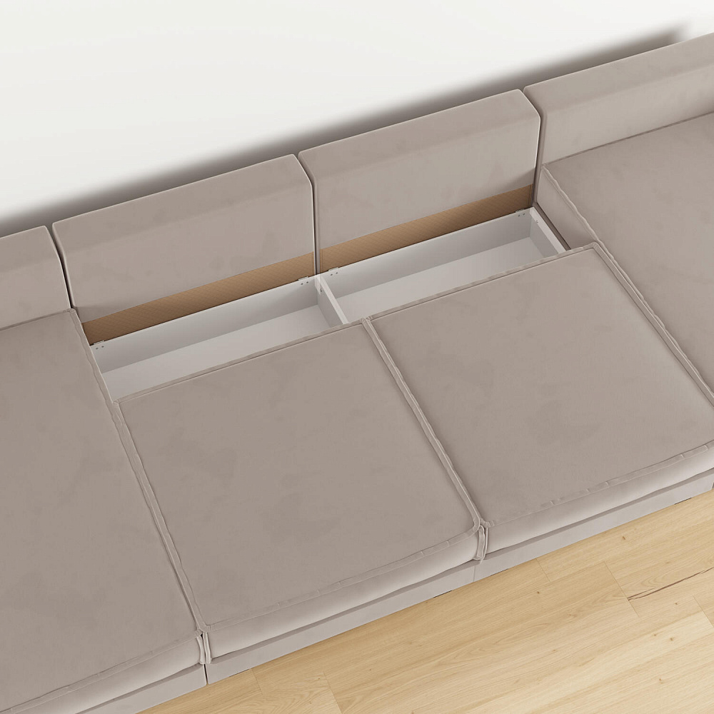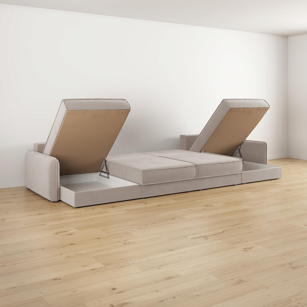 - 4 короба для белья. В диванных секциях и оттоманках предусмотрены вместительные коробы для хранения постельного белья и других вещей.