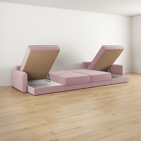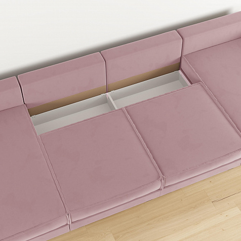 - 4 короба для белья. В диванных секциях и оттоманках предусмотрены вместительные коробы для хранения постельного белья и других вещей.