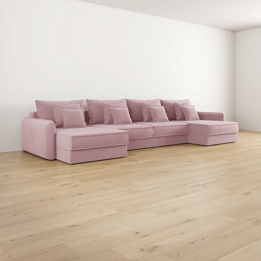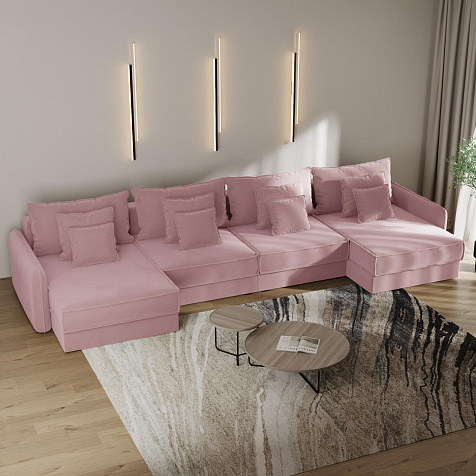 - 12 подушек в комплекте. 4 приспинных и 8 декоративных подушек разных размеров позволят скорректировать глубину посадки.