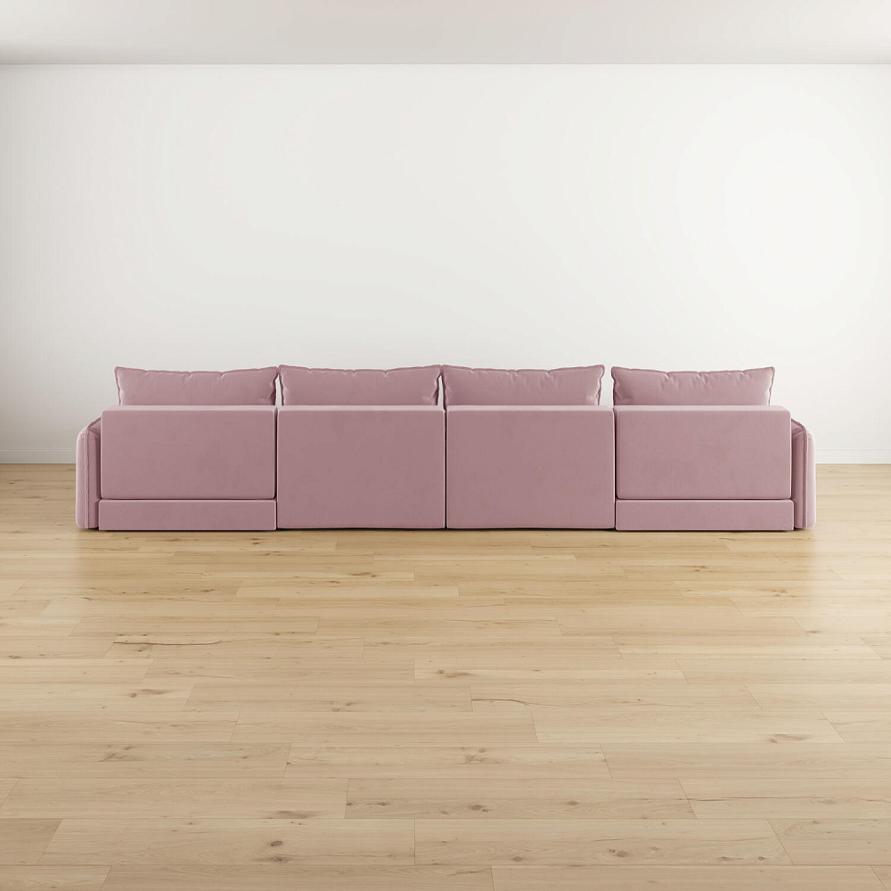 Глубина оттоманки: с подушками — 107 см, без подушек — 148 см.