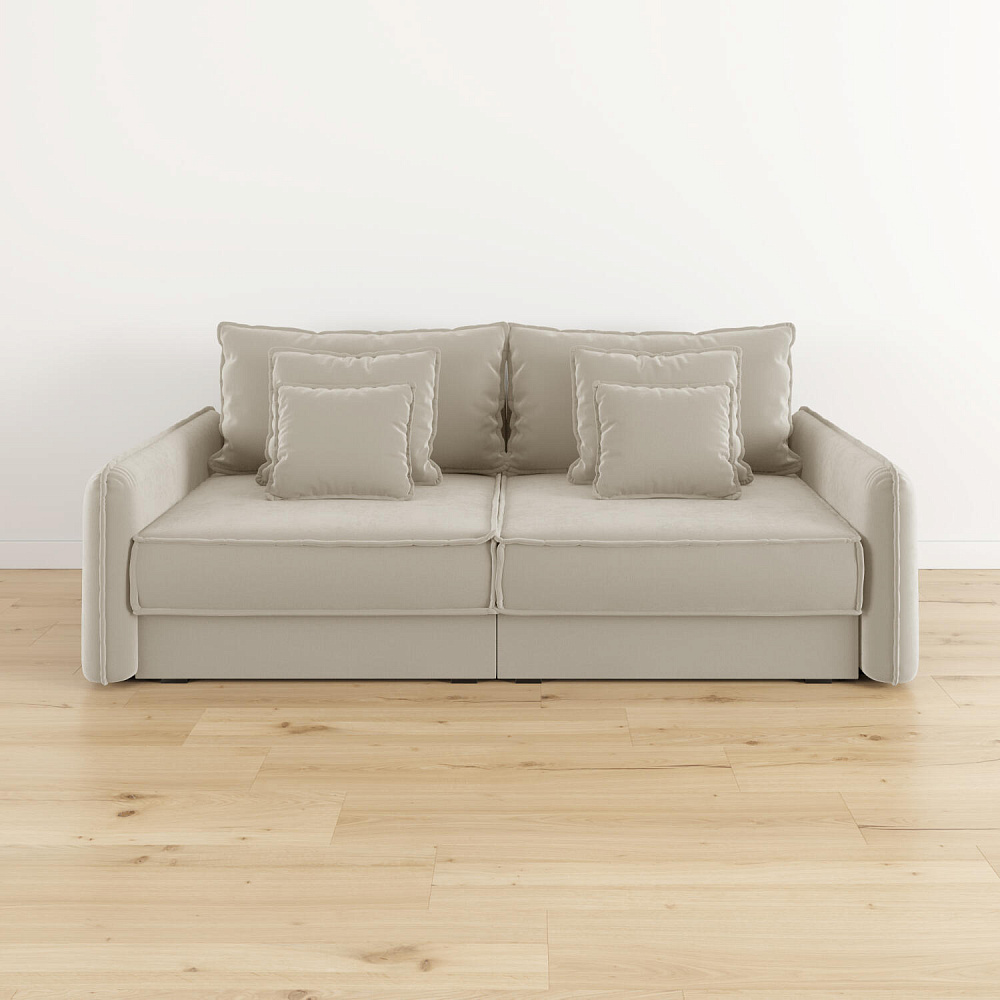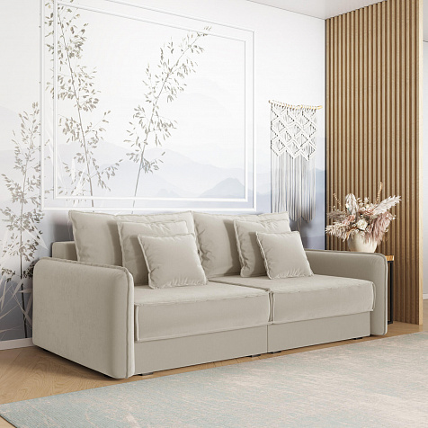 - Два вида подушек. В комплектацию дивана входят приспинные и декоративные подушки, которые позволяют скорректировать глубину посадки.