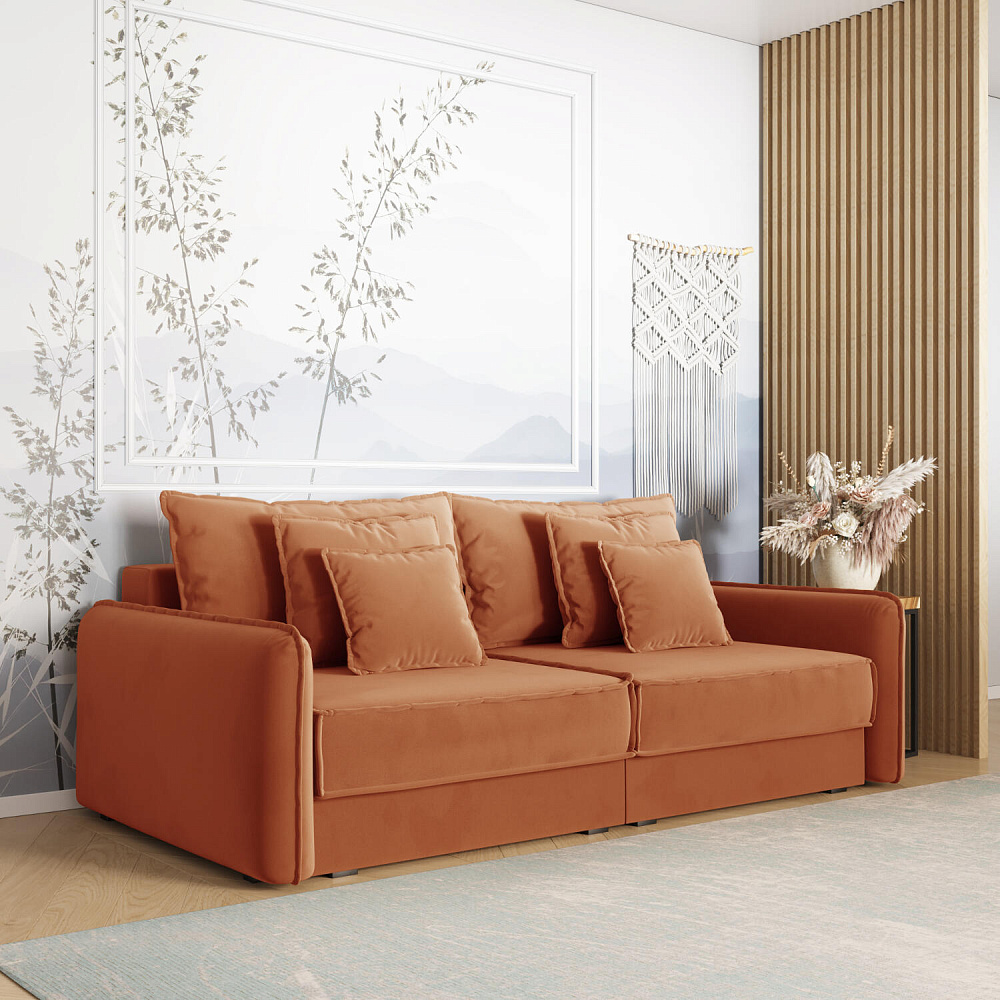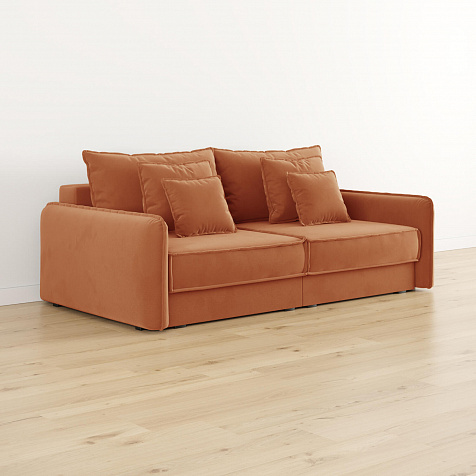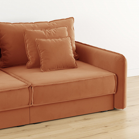 - Два вида подушек. В комплектацию дивана входят приспинные и декоративные подушки, которые позволяют скорректировать глубину посадки.