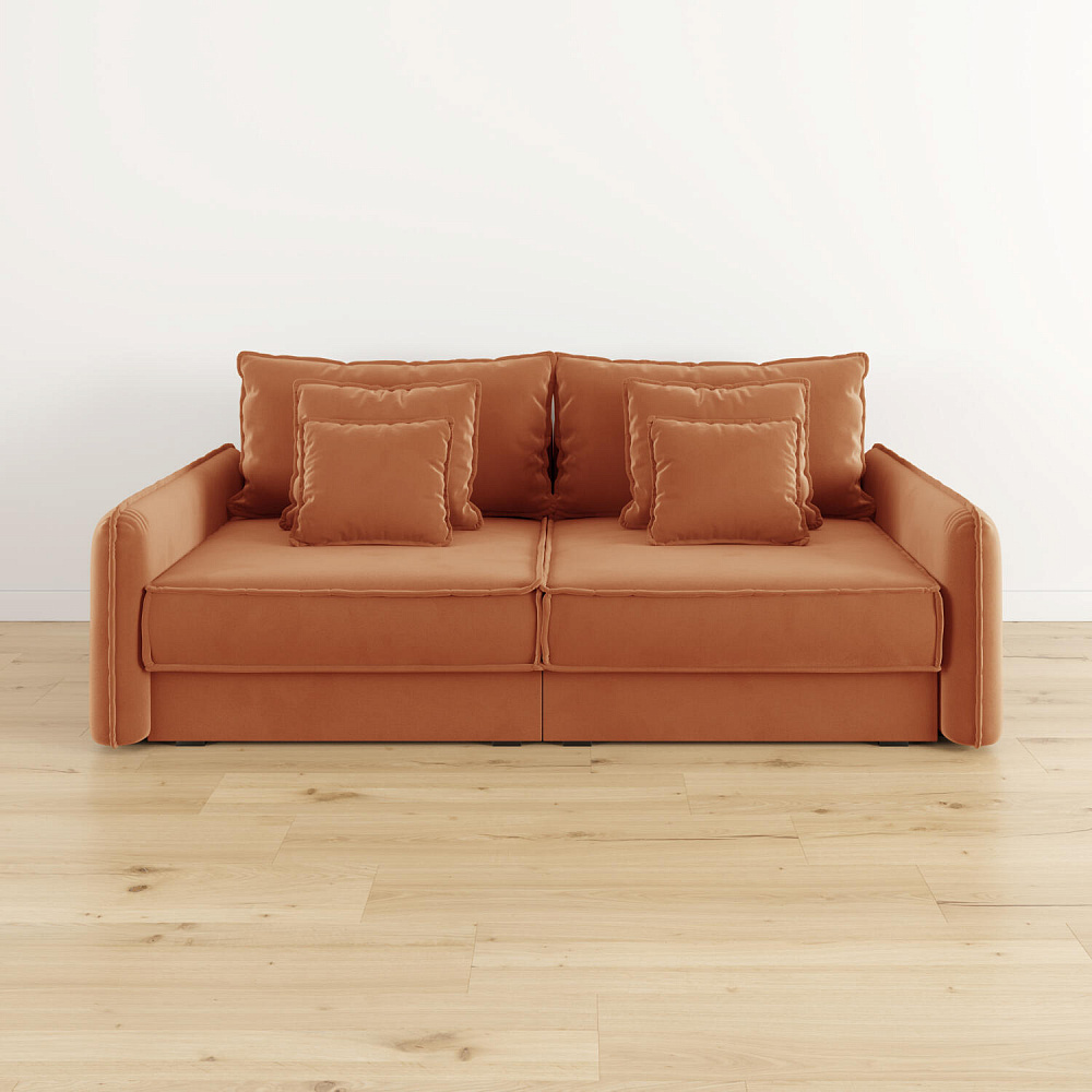 - Размер спального места — 200 х 167 см. Диван легко трансформируется в полноценное двуспальное место для сна и отдыха двух человек.