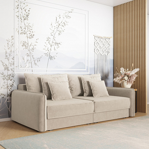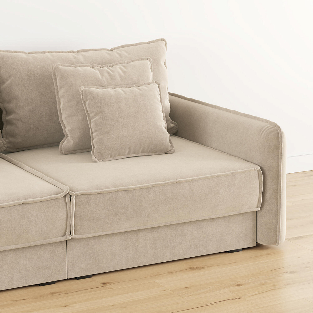 - Два вида подушек. В комплектацию дивана входят приспинные и декоративные подушки, которые позволяют скорректировать глубину посадки.