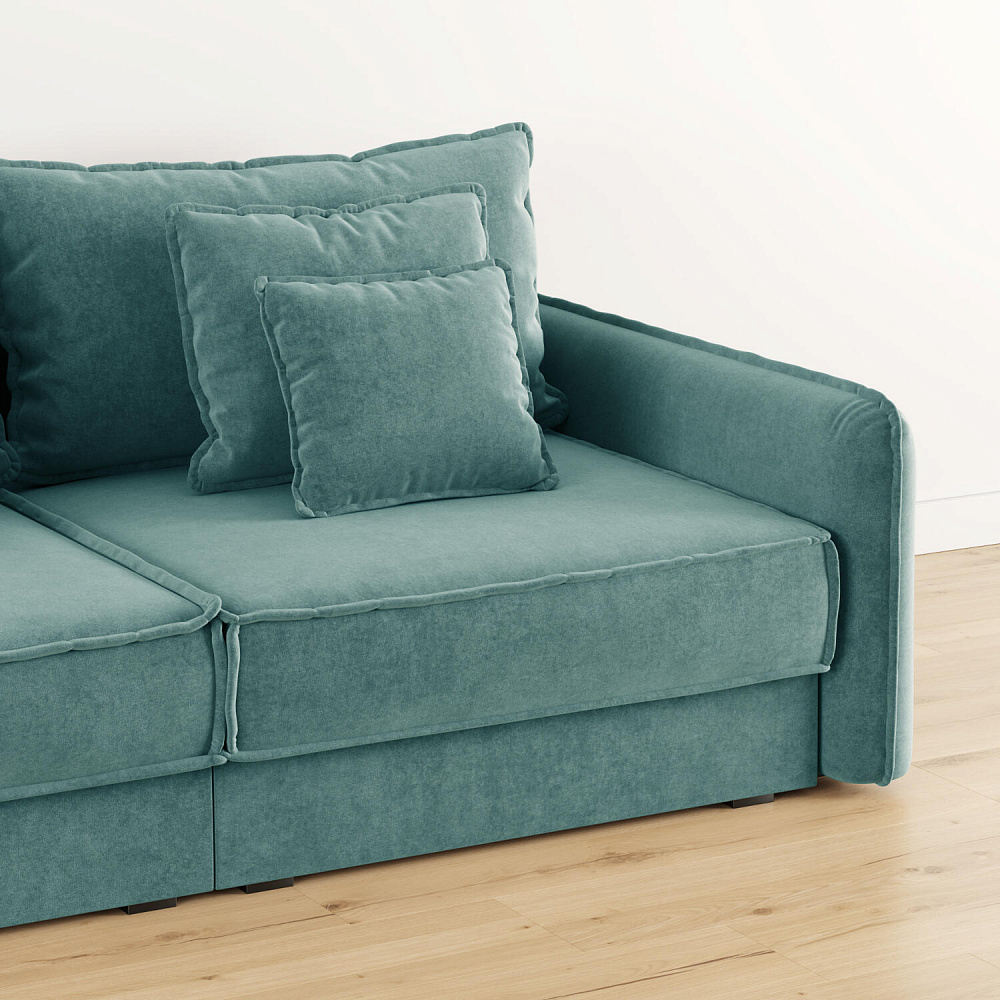 - Два вида подушек. В комплектацию дивана входят приспинные и декоративные подушки, которые позволяют скорректировать глубину посадки.