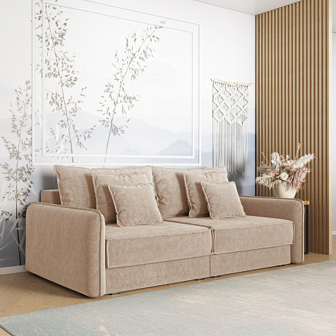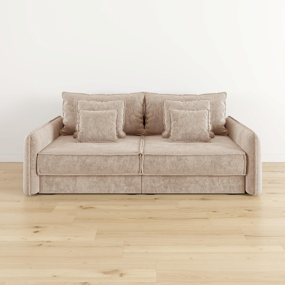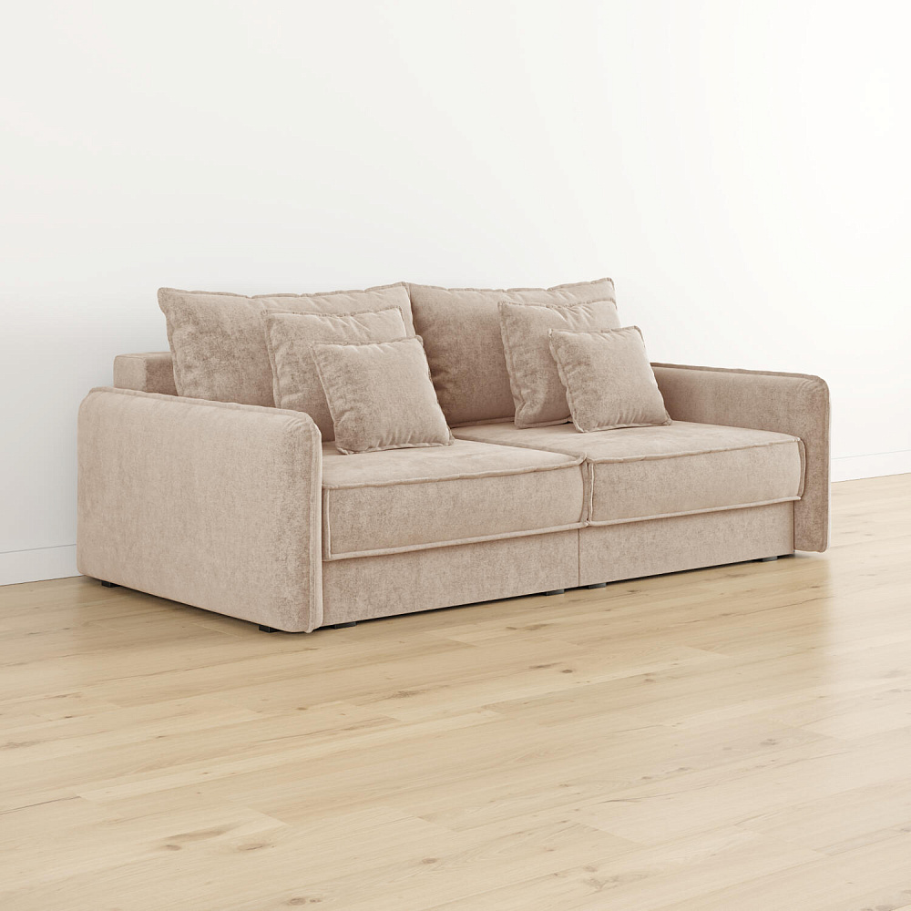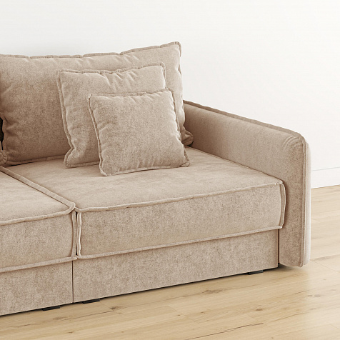 - Два вида подушек. В комплектацию дивана входят приспинные и декоративные подушки, которые позволяют скорректировать глубину посадки.