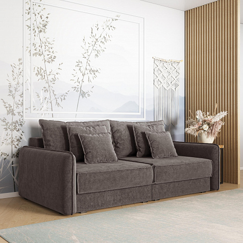 - Два вида подушек. В комплектацию дивана входят приспинные и декоративные подушки, которые позволяют скорректировать глубину посадки.