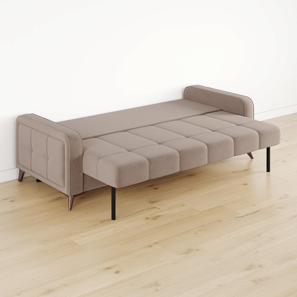 Высокие опоры. Визуально облегчают конструкцию и открывают доступ к уборке пространства под диваном. Диван стоит на 6 опорах, 2 из которых поддерживают выдвижную часть.
