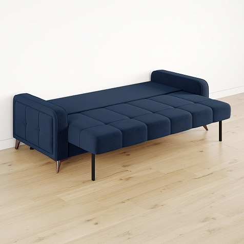 Высокие опоры. Визуально облегчают конструкцию и открывают доступ к уборке пространства под диваном. Диван стоит на 6 опорах, 2 из которых поддерживают выдвижную часть.