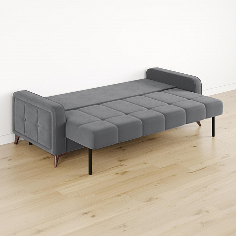 Высокие опоры. Визуально облегчают конструкцию и открывают доступ к уборке пространства под диваном. Диван стоит на 6 опорах, 2 из которых поддерживают выдвижную часть.