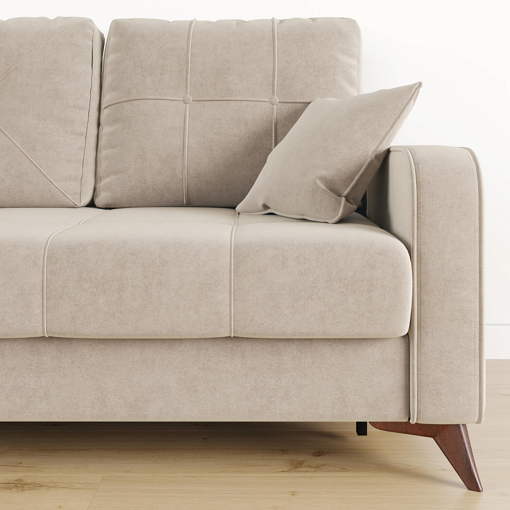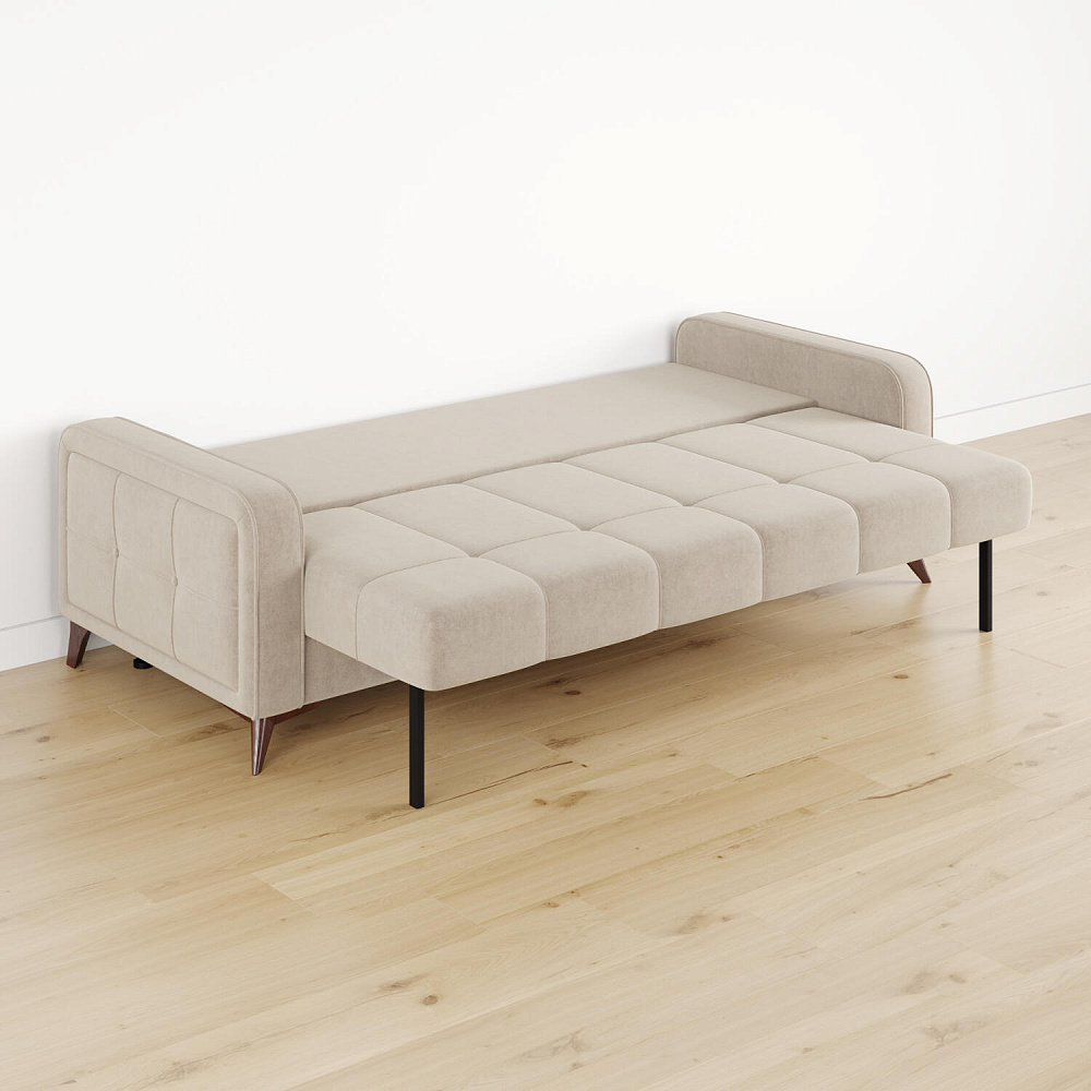 Высокие опоры. Визуально облегчают конструкцию и открывают доступ к уборке пространства под диваном. Диван стоит на 6 опорах, 2 из которых поддерживают выдвижную часть.