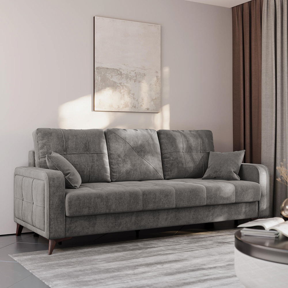 Диван «Престон» преобразит любое помещение. Модель с множеством декоративных элементов сможет не только оживить интерьер, но и полноценно заменить кровать. Под сиденьем предусмотрен широкий ящик для хранения постельных принадлежностей и других вещей.