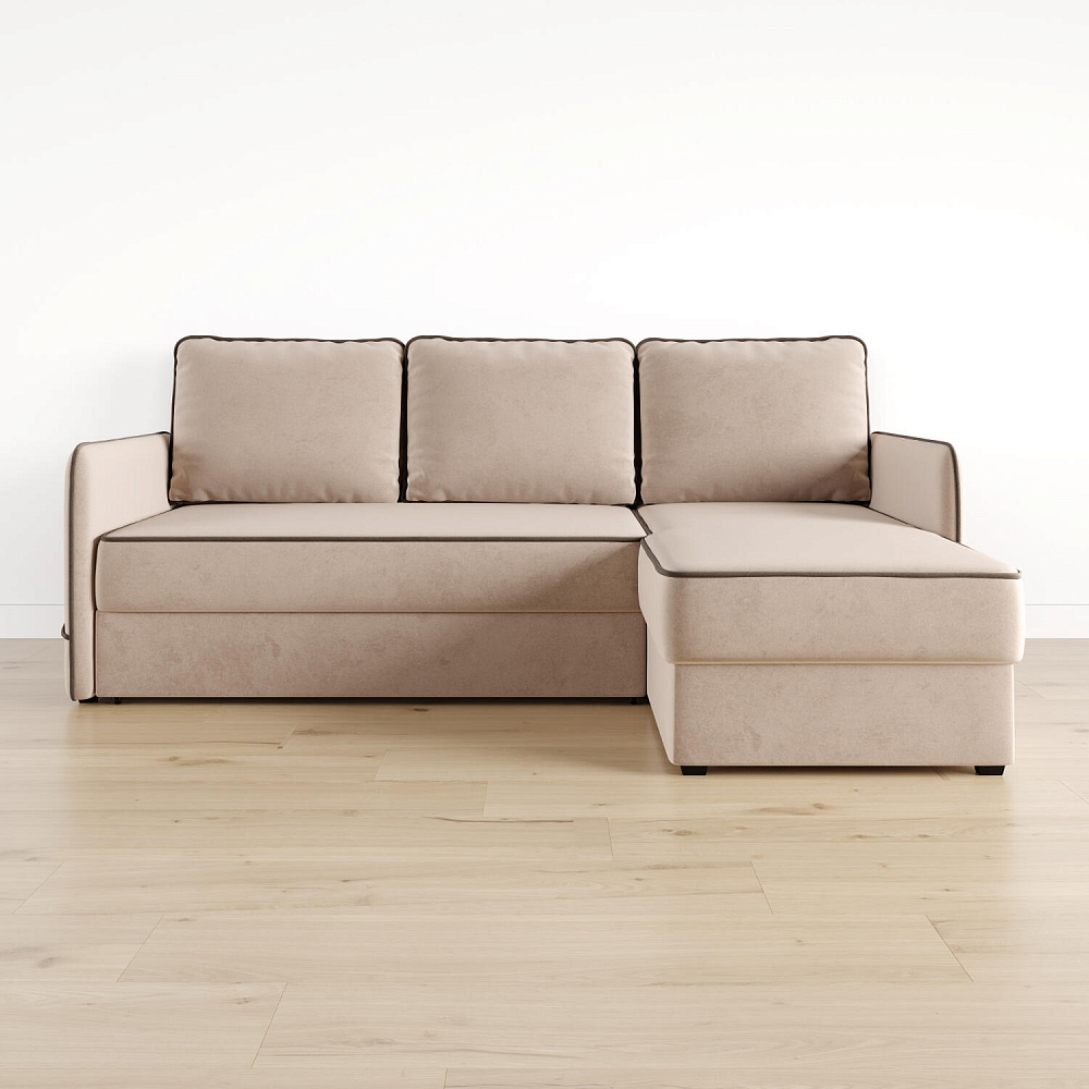 Диван угловой «Симпл» станет стильным акцентом в современной гостиной. Контрастный кант на обивке из мягкого велюра придаёт дизайну дивана завершённый вид и подчёркивает мягкую геометричность. Механизм трансформации «Дельфин» в сложенном виде позволяет сэкономить пространство в комнате, в разложенном — обеспечивает комфортное и ровное спальное место. Спинка дивана выполнена в той же обивке, что и основная часть, что даёт возможность использовать диван для зонирования комнаты.