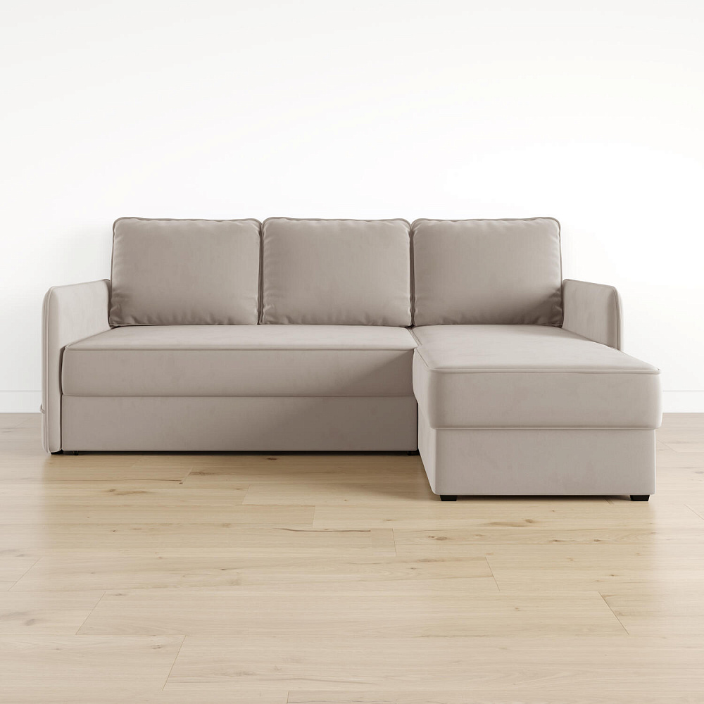 Диван угловой «Симпл» станет стильным акцентом в современной гостиной. Контрастный кант на обивке из мягкого велюра придаёт дизайну дивана завершённый вид и подчёркивает мягкую геометричность. Механизм трансформации «Дельфин» в сложенном виде позволяет сэкономить пространство в комнате, в разложенном — обеспечивает комфортное и ровное спальное место. Спинка дивана выполнена в той же обивке, что и основная часть, что даёт возможность использовать диван для зонирования комнаты.