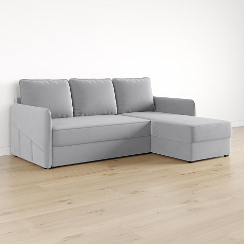 Диван угловой «Симпл» станет стильным акцентом в современной гостиной. Контрастный кант на обивке из мягкого велюра придаёт дизайну дивана завершённый вид и подчёркивает мягкую геометричность. Механизм трансформации «Дельфин» в сложенном виде позволяет сэкономить пространство в комнате, в разложенном — обеспечивает комфортное и ровное спальное место. Спинка дивана выполнена в той же обивке, что и основная часть, что даёт возможность использовать диван для зонирования комнаты.