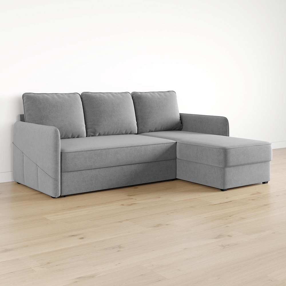 - Универсальный угол. Диван подстроится под условия помещения — оттоманка устанавливается как слева, так и справа.