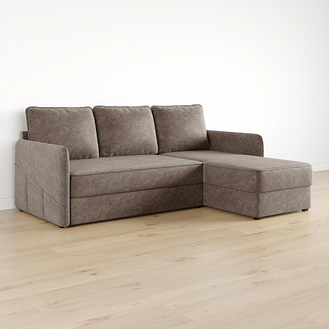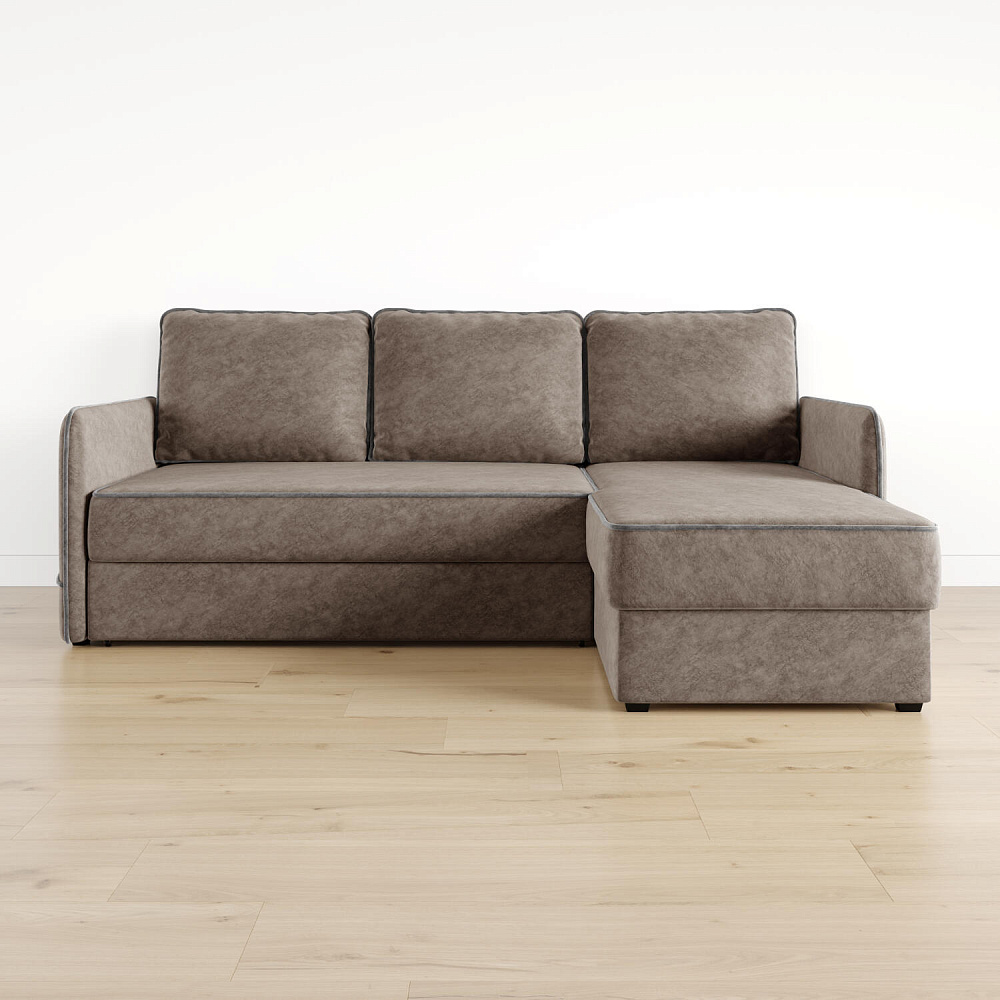Диван угловой «Симпл» станет стильным акцентом в современной гостиной. Контрастный кант на обивке из мягкого велюра придаёт дизайну дивана завершённый вид и подчёркивает мягкую геометричность. Механизм трансформации «Дельфин» в сложенном виде позволяет сэкономить пространство в комнате, в разложенном — обеспечивает комфортное и ровное спальное место. Спинка дивана выполнена в той же обивке, что и основная часть, что даёт возможность использовать диван для зонирования комнаты.