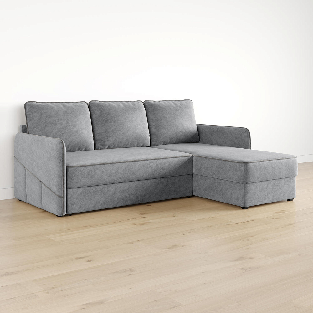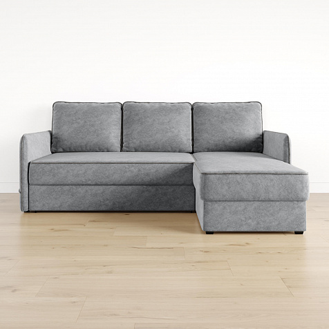 Диван угловой «Симпл» станет стильным акцентом в современной гостиной. Контрастный кант на обивке из мягкого велюра придаёт дизайну дивана завершённый вид и подчёркивает мягкую геометричность. Механизм трансформации «Дельфин» в сложенном виде позволяет сэкономить пространство в комнате, в разложенном — обеспечивает комфортное и ровное спальное место. Спинка дивана выполнена в той же обивке, что и основная часть, что даёт возможность использовать диван для зонирования комнаты.