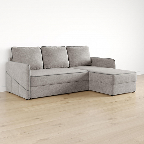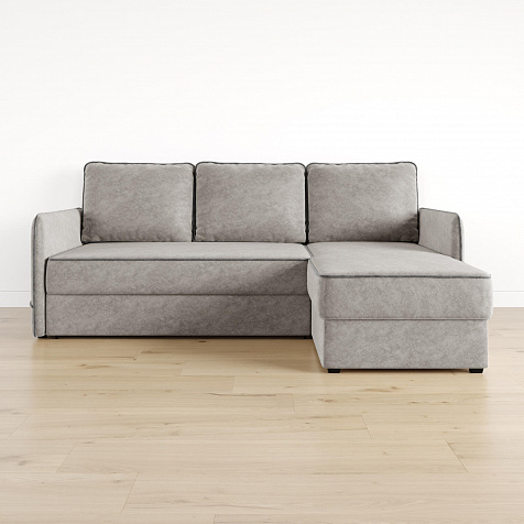 Диван угловой «Симпл» станет стильным акцентом в современной гостиной. Контрастный кант на обивке из мягкого велюра придаёт дизайну дивана завершённый вид и подчёркивает мягкую геометричность. Механизм трансформации «Дельфин» в сложенном виде позволяет сэкономить пространство в комнате, в разложенном — обеспечивает комфортное и ровное спальное место. Спинка дивана выполнена в той же обивке, что и основная часть, что даёт возможность использовать диван для зонирования комнаты.