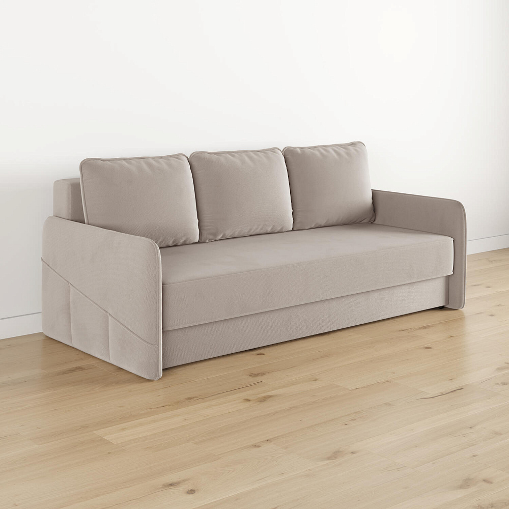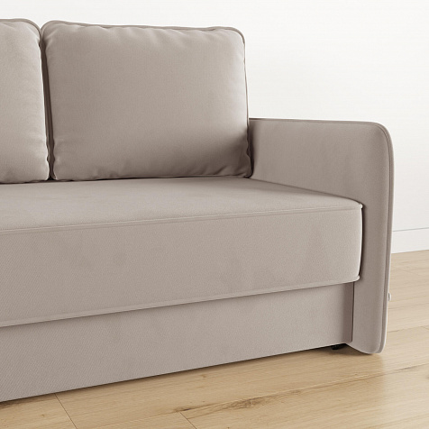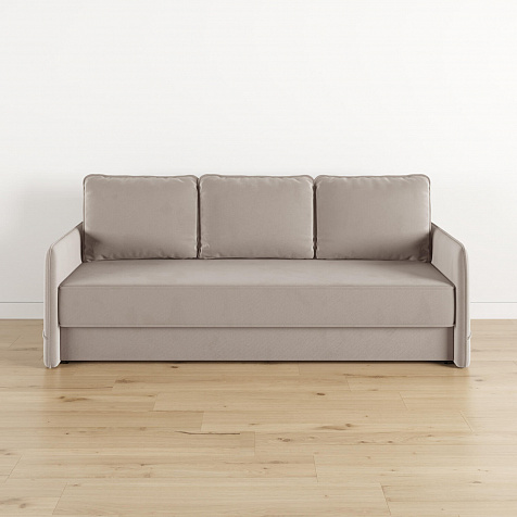 Диван «Симпл» станет стильным акцентом в современной гостиной. Контрастный кант на обивке из мягкого велюра придаёт дизайну дивана завершённый вид и подчёркивает мягкую геометричность. Механизм трансформации «Еврокнижка» в сложенном виде позволяет сэкономить пространство в комнате, в разложенном — обеспечивает комфортное и ровное спальное место. Спинка дивана выполнена в той же обивке, что и основная часть, что даёт возможность использовать диван для зонирования комнаты.