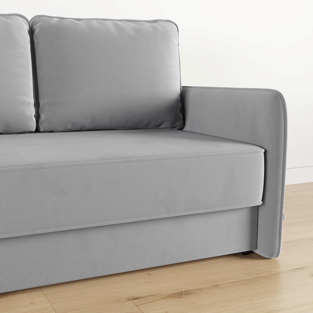 Диван «Симпл» станет стильным акцентом в современной гостиной. Контрастный кант на обивке из мягкого велюра придаёт дизайну дивана завершённый вид и подчёркивает мягкую геометричность. Механизм трансформации «Еврокнижка» в сложенном виде позволяет сэкономить пространство в комнате, в разложенном — обеспечивает комфортное и ровное спальное место. Спинка дивана выполнена в той же обивке, что и основная часть, что даёт возможность использовать диван для зонирования комнаты.