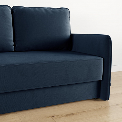 Диван «Симпл» станет стильным акцентом в современной гостиной. Контрастный кант на обивке из мягкого велюра придаёт дизайну дивана завершённый вид и подчёркивает мягкую геометричность. Механизм трансформации «Еврокнижка» в сложенном виде позволяет сэкономить пространство в комнате, в разложенном — обеспечивает комфортное и ровное спальное место. Спинка дивана выполнена в той же обивке, что и основная часть, что даёт возможность использовать диван для зонирования комнаты.