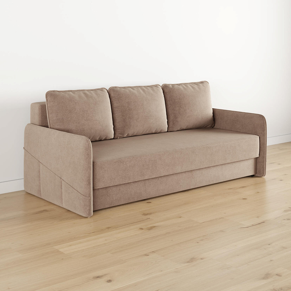Диван «Симпл» станет стильным акцентом в современной гостиной. Контрастный кант на обивке из мягкого велюра придаёт дизайну дивана завершённый вид и подчёркивает мягкую геометричность. Механизм трансформации «Еврокнижка» в сложенном виде позволяет сэкономить пространство в комнате, в разложенном — обеспечивает комфортное и ровное спальное место. Спинка дивана выполнена в той же обивке, что и основная часть, что даёт возможность использовать диван для зонирования комнаты.