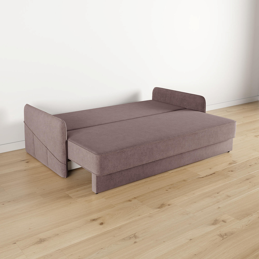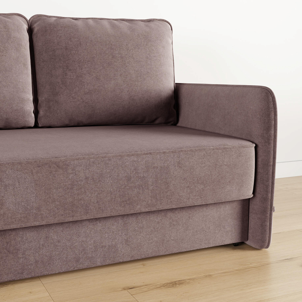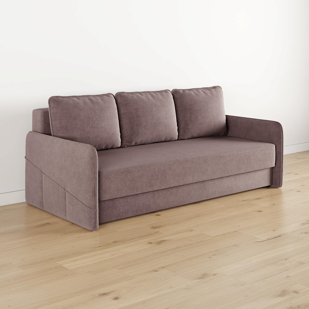 Диван «Симпл» станет стильным акцентом в современной гостиной. Контрастный кант на обивке из мягкого велюра придаёт дизайну дивана завершённый вид и подчёркивает мягкую геометричность. Механизм трансформации «Еврокнижка» в сложенном виде позволяет сэкономить пространство в комнате, в разложенном — обеспечивает комфортное и ровное спальное место. Спинка дивана выполнена в той же обивке, что и основная часть, что даёт возможность использовать диван для зонирования комнаты.