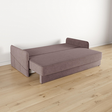 - Механизм трансформации «Еврокнижка». Диван легко раскладывается — нужно выкатить вперёд сиденье и опустить спинку. Удобен механизм ещё тем, что двигается только передняя часть, поэтому отодвигать диван от стены не требуется.