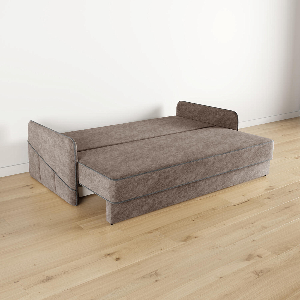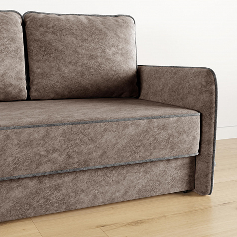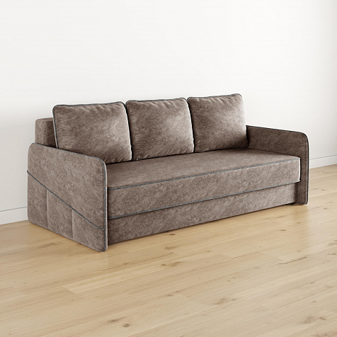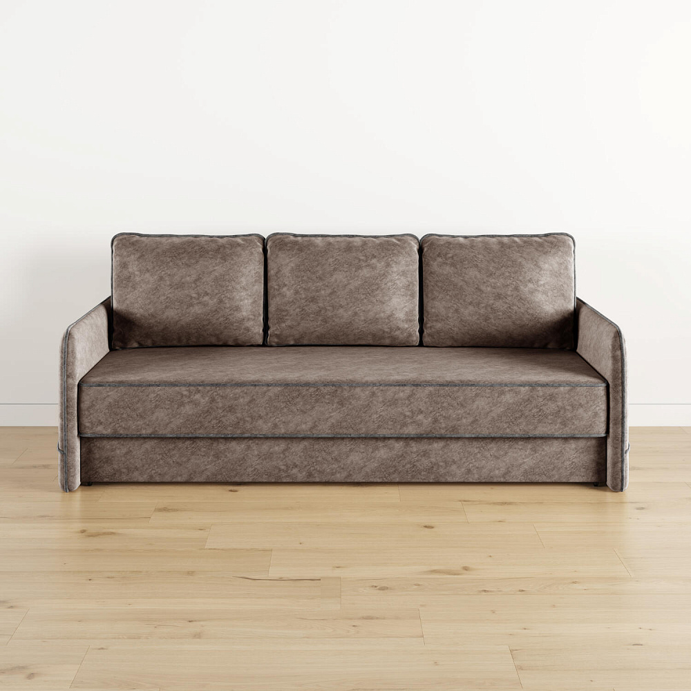 Диван «Симпл» станет стильным акцентом в современной гостиной. Контрастный кант на обивке из мягкого велюра придаёт дизайну дивана завершённый вид и подчёркивает мягкую геометричность. Механизм трансформации «Еврокнижка» в сложенном виде позволяет сэкономить пространство в комнате, в разложенном — обеспечивает комфортное и ровное спальное место. Спинка дивана выполнена в той же обивке, что и основная часть, что даёт возможность использовать диван для зонирования комнаты.